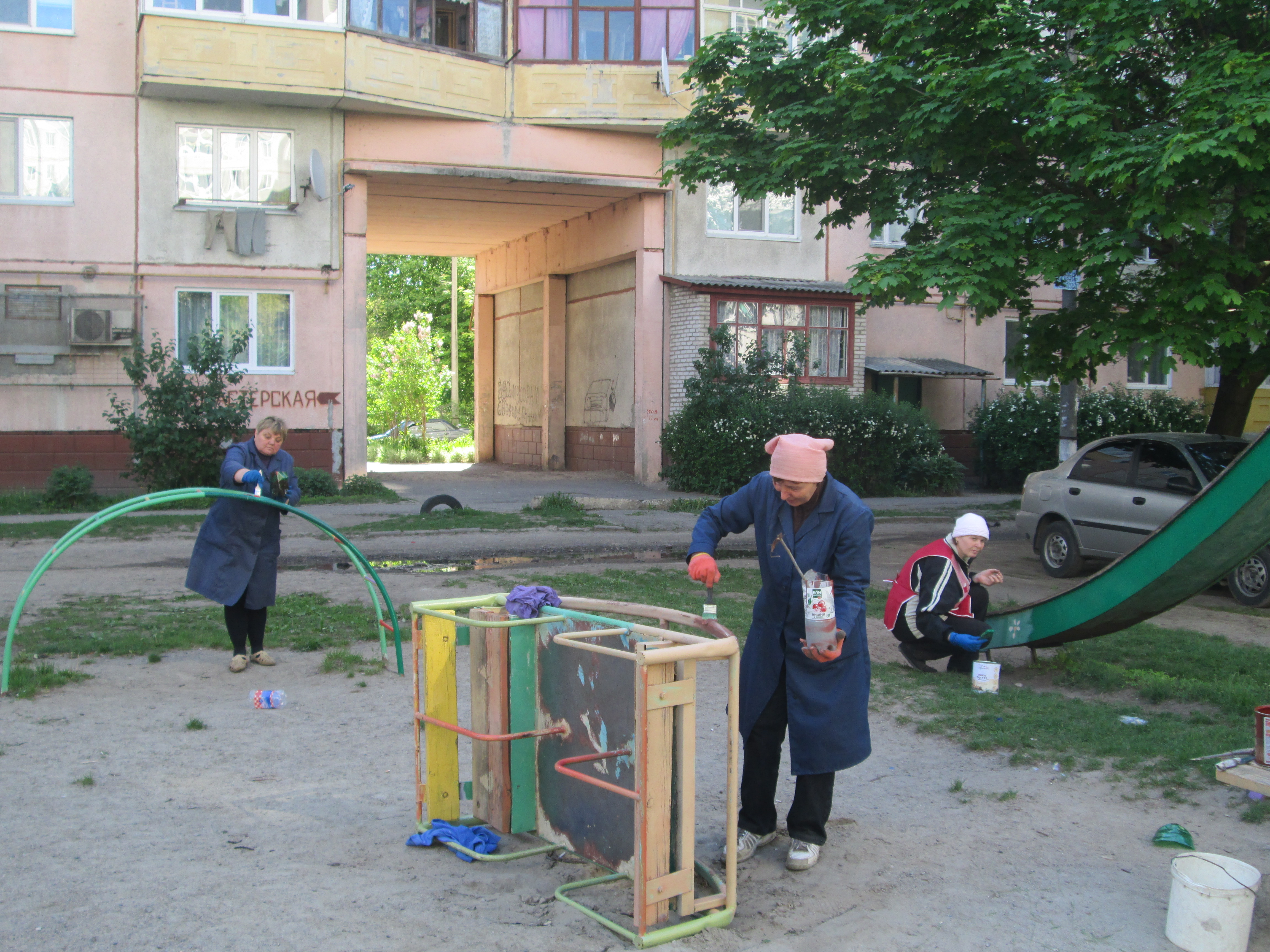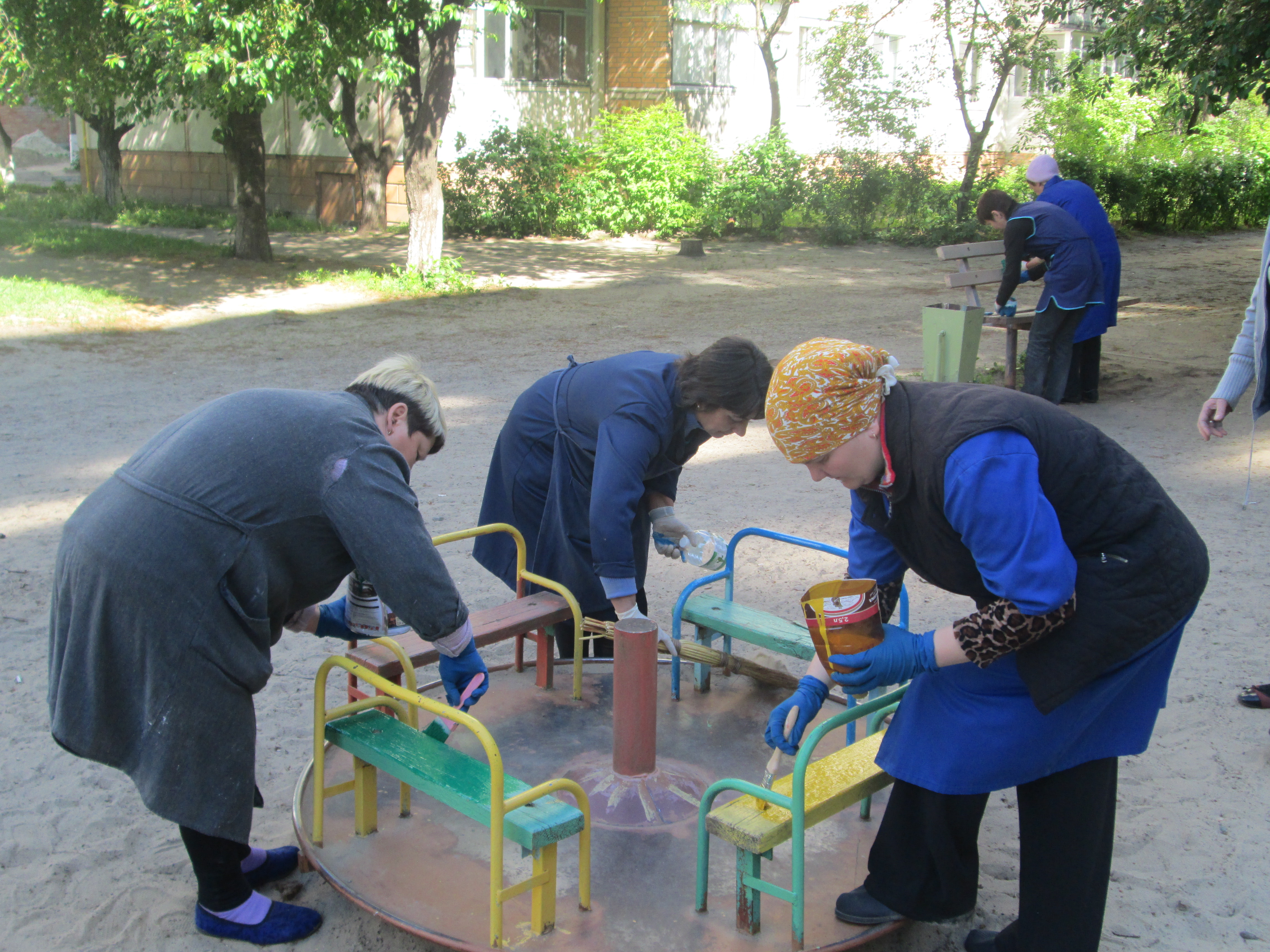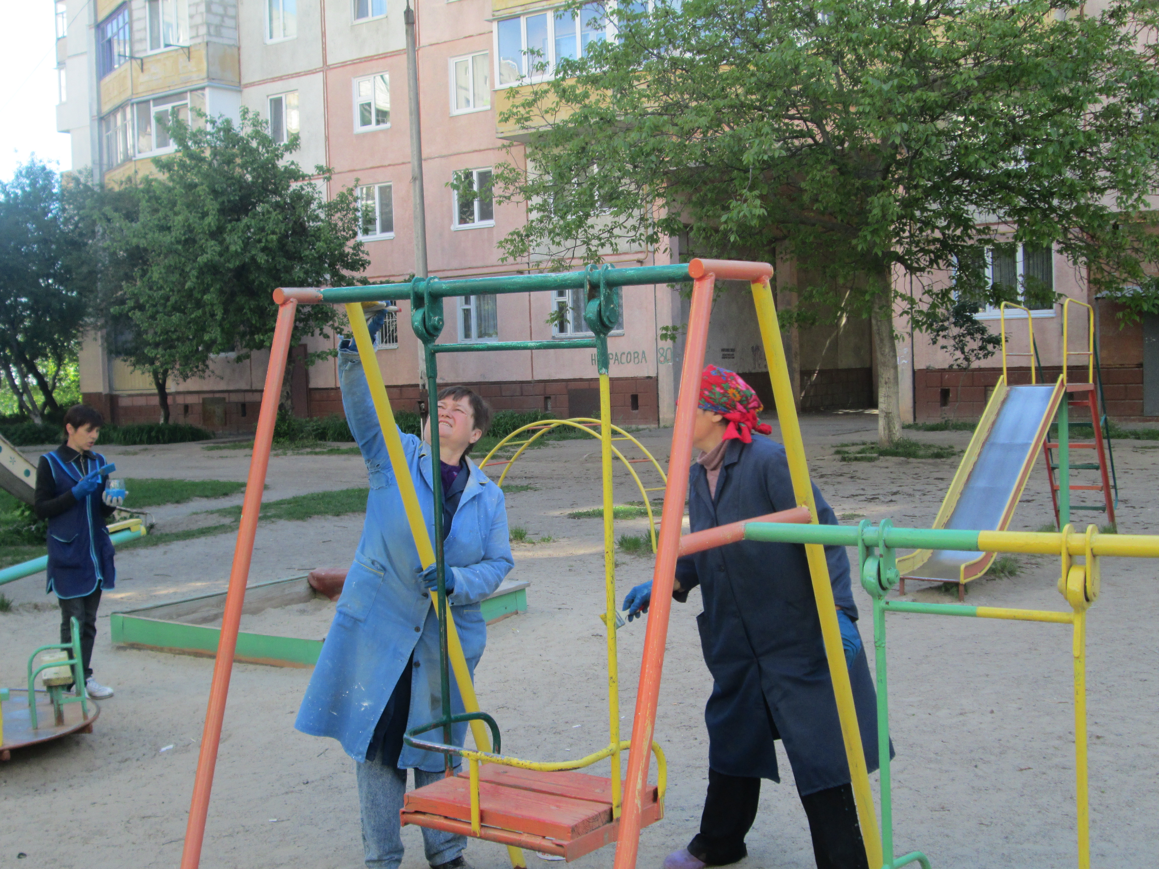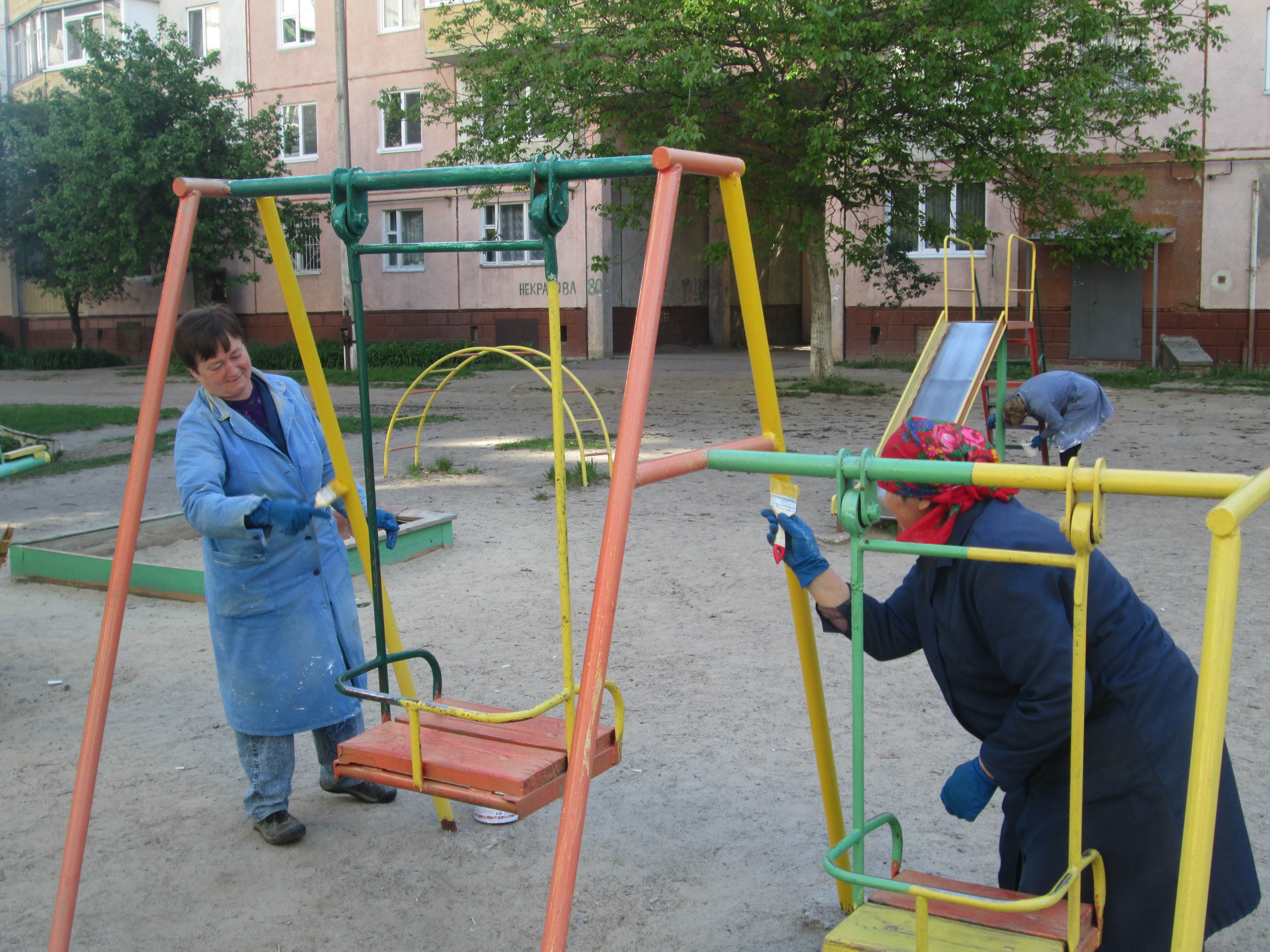 На сьогоднішній день фарбування дитячих майданчиків на прибудинкових територіях житлових будинків є важливим для працівників підприємства, адже щирі посмішки дітей, які радіють різнобарвним спорудам дитячих майданчиків, найкраща нагорода.